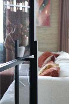 • Industriële deur in de kleur zwart, 4-vlaks en met helder glas