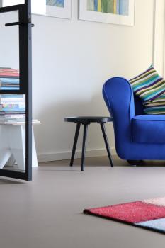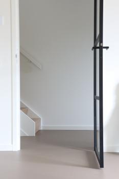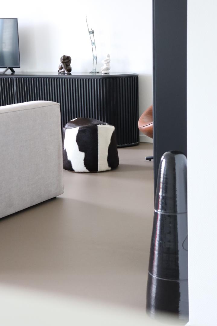De basis? Marmoleum in de warme tint Milk Chocolate, gelegd door onze specialist Jelle. De vloer loopt stijlvol door over zowel de begane grond als op de 1e verdieping.