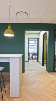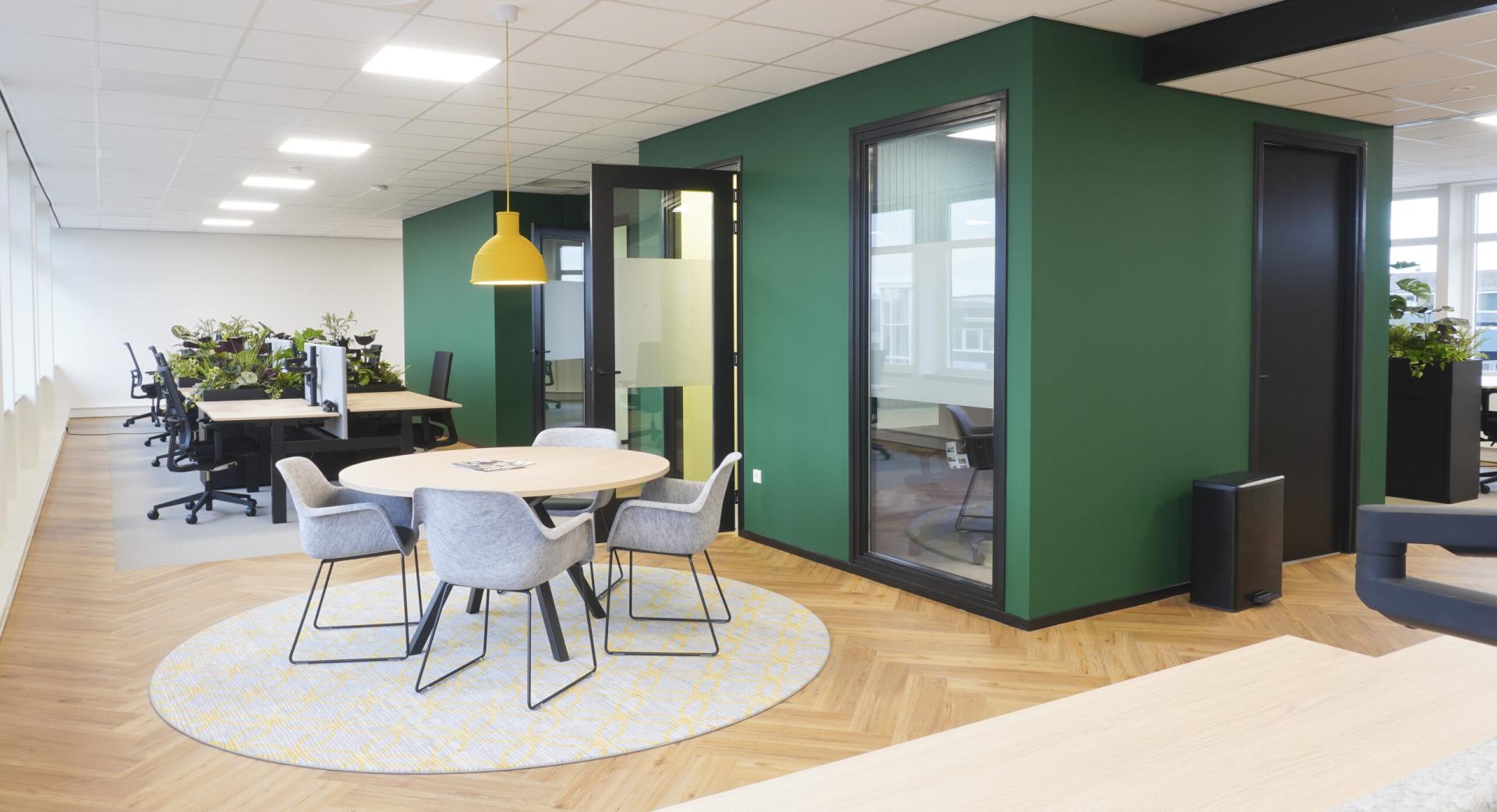 De Jong Projectinrichters nam het kantoormeubilair en de totale inrichting voor zijn rekening. BronSnijder was verantwoordelijk voor de stoffering van de vloeren en de raambekleding. Een duidelijke rolverdeling, korte lijnen en één gezamenlijk doel: een werkomgeving die klopt tot in detail.